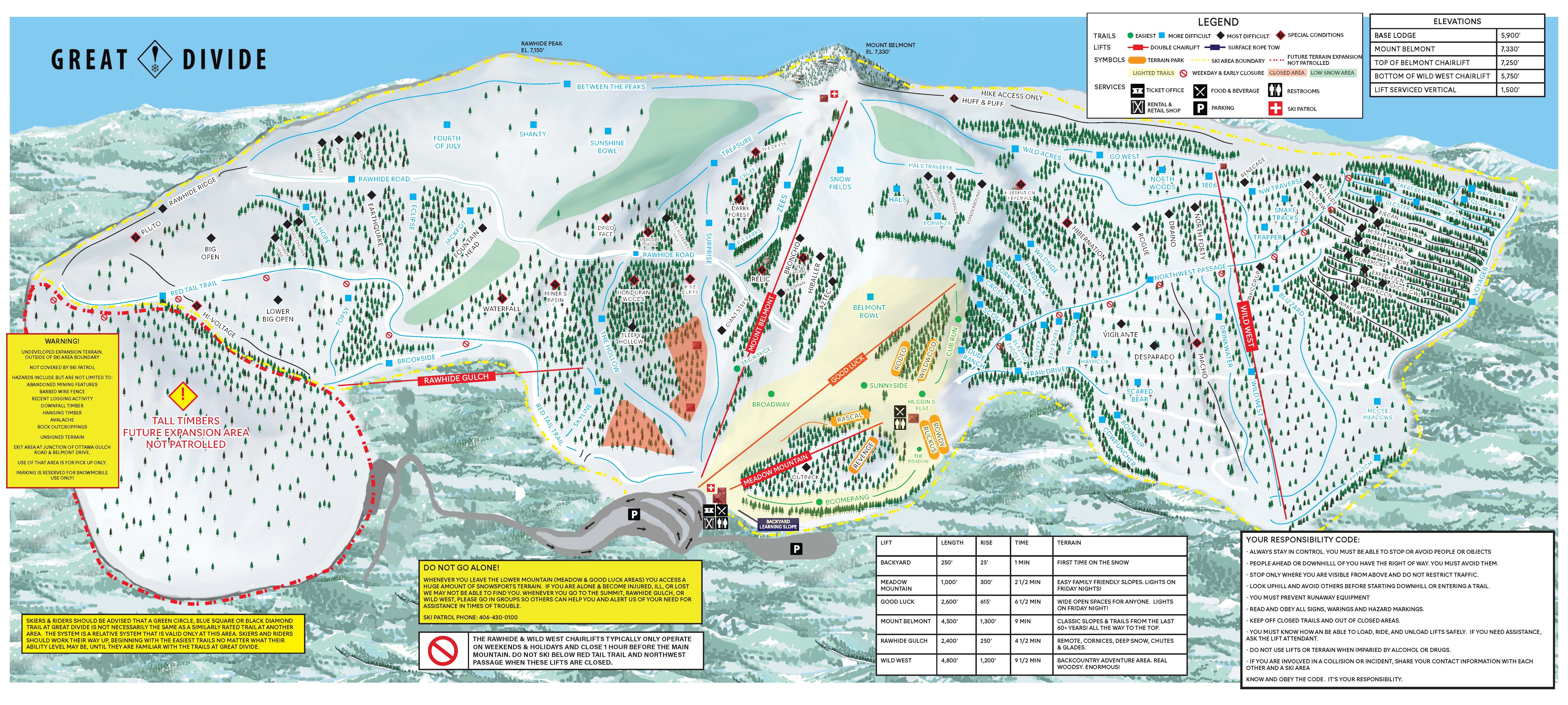 Explore Montana’s friendliest mountain! Use our trail map to get familiar with Great Divide’s three main peaks and more than 100 named trails. From gentle beginner runs to exciting steeps and freestyle terrain, there’s something for every skier and rider.